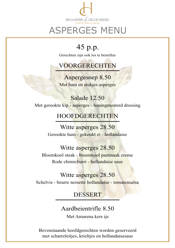 Het heerlijke aspergemenu is terug bij Brasserie De Hildenberg!
